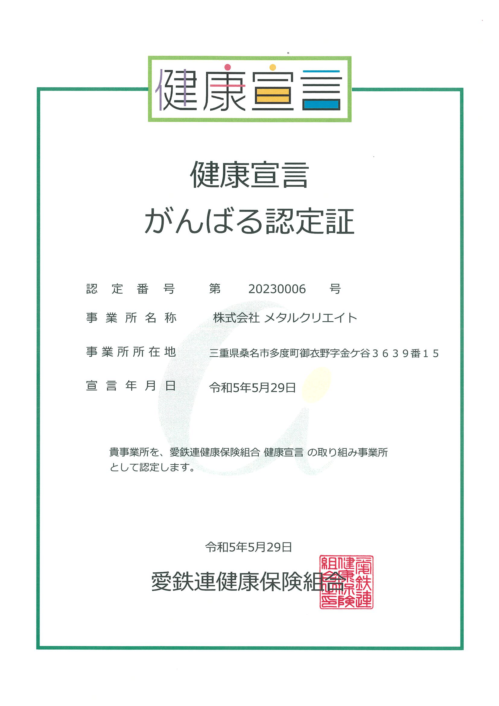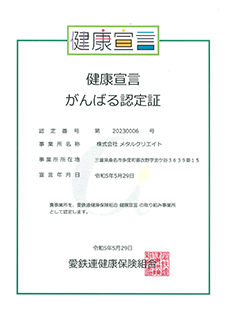 (株)メタルクリエイトは、ステークホルダーの期待や要請に応えつつ、変化するビジネス環境の中で持続的な成長を目指し、誠実な企業行動を通じて、社会の持続的な発展に率先して貢献します。