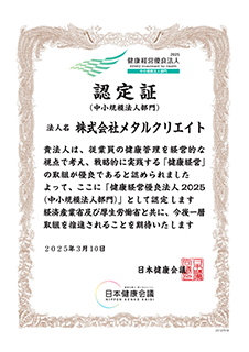 2024年3月~ | 健康経営優良法人中小規模法人部門 認証 |